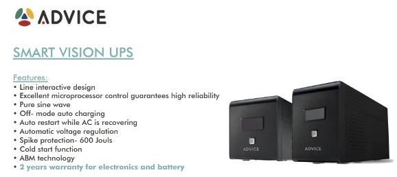אל פסק חכם ליין אינטראקטיב גל מוצא סינוס אדוויס Advice SV2000 Smart Vision Line Interactive 2000VA/1400W
