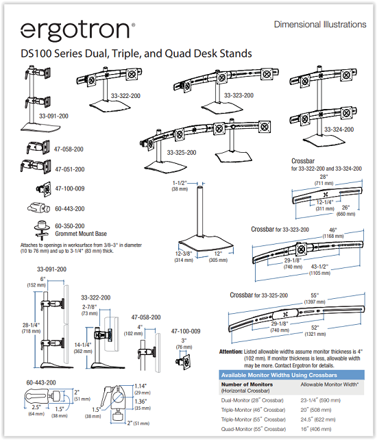 זרוע ל 4 מסכי מחשב ארגוטרון Ergotron E-33-324-200 DS100 Quad-Monitor Desk Stand