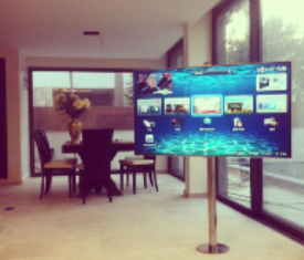 עמוד נירוסטה רצפתי מעוצב ומרהיב למסכי טלוויזיה תואם למסכים 32 עד 75 אינץ',