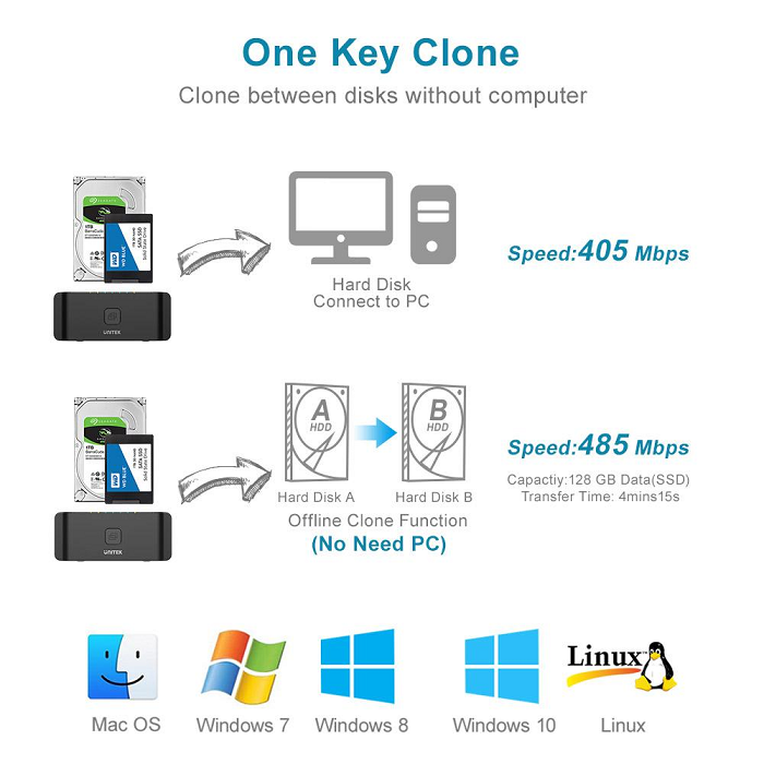 מאפשרת לך לשכפל או לשכפל 2 כוננים קשיחים ללא מארח מחשב בקלות!
