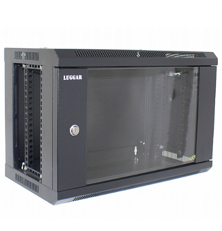 ארון תקשורת לתליה כולל דלת זכוכית לוגר Lugger HI-6U-300-B 6U Wall Mount Rack Cabinet 550×300 Black