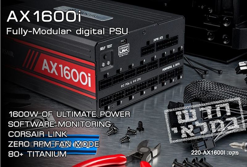 ספק כוח קורסייר לגיימרים מודולרי CORSAIR AX1600i CP-9020087-EU 80+ Titanium Modular 1600Watt Power Supply
