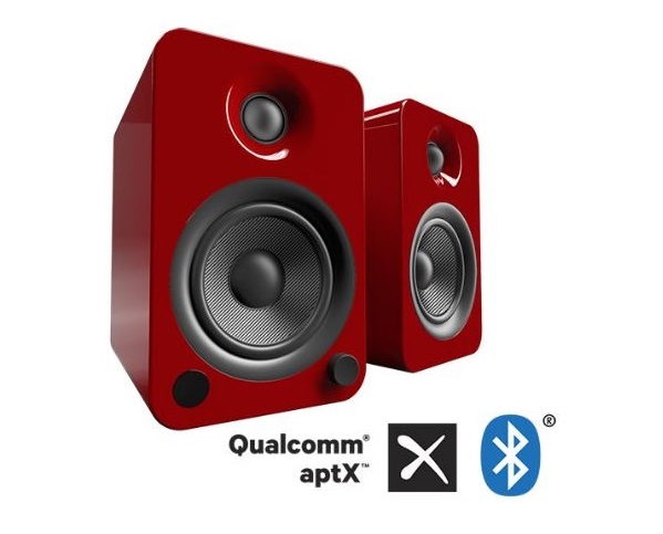 זוג רמקולים מוגברים מפוארים מעץ אלחוטים למחשב צבע אדום קאנטו Kanto YU6 Powered Speakers with Bluetooth and Phono Preamp 200Watts Bluetooth Gloss Red
