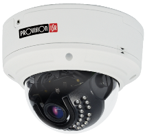 מצלמת כיפה אנטי ונדליז'ם פרוויז'ן IP רשת יום ולילה אינפרא Provision CMOS DAI-250IP5VF (2592x1944) 5MegaPixel 3.3-10.5mm (94°-35°) 30Led 25M PoE Real Time IP Camera
