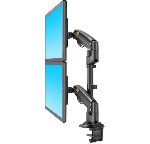 זרוע שולחנית הידראולית דו מפרקית ל 2 מסכי מחשב נצמד לשולחן מלחציים (אפשרות הברגה) מתאימה לעבודה במצב אנכי וגם אופקי לגודל מסך 22 עד 35 אינץ' עד משקל 9 קילו לכל מסך הארכה עד 55 ס''מ North Bayou NB H180 Adjustable Gas Spring Monitor Desk Arm