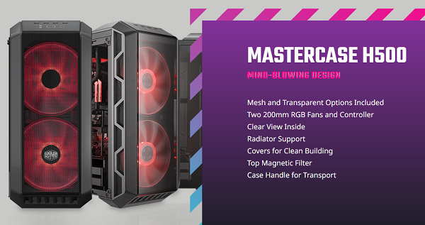 מארז מחשב לגיימרים קולר מאסטר Cooler Master MasterCase HAF 500 Mesh H500-KGNN-S00 MID TOWER 1x120mm 2X200mm RGB Fans PC Case