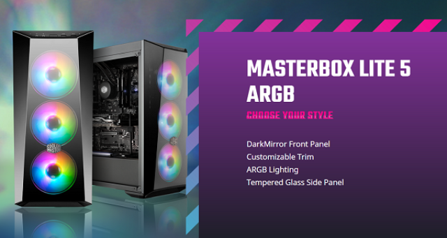 מארז מחשב לגיימרים קולר מאסטר Cooler Master MASTERBOX Lite 5 ARGB 3x120mm ATX Mid Tower L5S3-KGNN-05