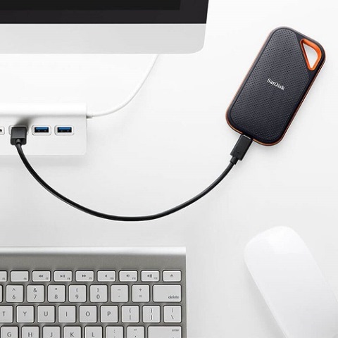 דיסק קשיח פלאש חיצוני SSD סאנדיסק אקסטרים Sandisk SDSSDE61-2T00-G25 Read 1050MB/s Write 1000MB/s Extreme Portable External SSD 2TB USB 3.2 Gen 2, USB-C