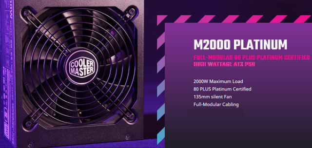 דגם ספק כוח מודולרי למחשב קולר מאסטר מתאים למיינינג COOLER MASTERWATT M2000 PSU 2000W 80plus Platinum MPZ-K001-AFFBP 135 FAN