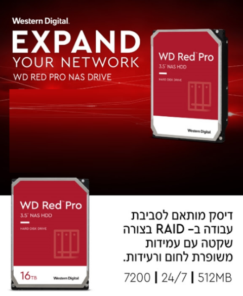 דיסק קשיח ווסטרן דיגיטל Western Digital Red Pro for NAS WD161KFGX 16TB 512MB Cache SATA3 7200RPm Caviar Red Pro