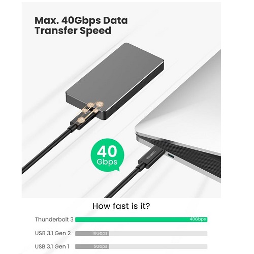 כבל Thunderbolt 3 הוא לא רק כבל Thunderbolt 3, אלא גם תומך בכל תכונות ה"חובה" של USB 3.1. כבל Thunderbolt 3 זה יכול גם להתאים ל-USB 3.1 Gen 2, USB 3.0, USB 2.0, זה אומר שהוא יכול לשמש גם כבל USB-C אוניברסלי עבור התקנים התומכים ב-USB-C, מחשבים, טלפונים, טאבלטים, כוננים קשיחים, עגינה תחנות, אביזרים ועוד.