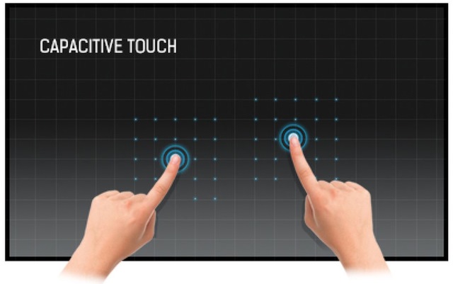 מגע מזוהה כי מאפיינים חשמליים של רשת החיישן משתנה כאשר האצבע האנושית מונחת על הזכוכית.