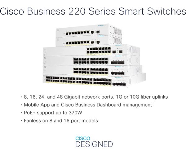 סדרת Cisco Business 220 הם מתגים חכמים במחיר סביר עם קלות שימוש, אבטחה ואמינות עבור רשתות ברמה עסקית.