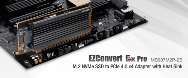 בקר כרטיס הרחבה לדיסק פלאש ICY DOCK EZConvert Ex Pro MB987M2P-1B 1 x M.2 NVMe SSD to PCIe 3.0 x4 Adapter with Heat Sink PCIe Bracket