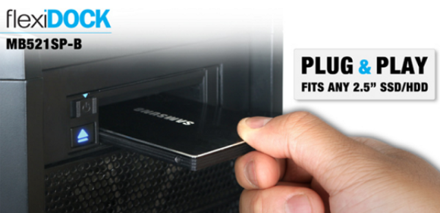 מגירה פנימית למארז לשליפה מהירה לדיסק קשיח 2.5 אינצ Icy Dock lexiDOCK MB521SP-B 2.5'' SSD Dock Trayless Hot-Swap SATA / SAS Mobile Rack for Ext 3.5'' Bay