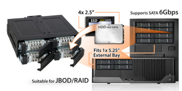מתאים ל-4 x 5 מ"מ עד 15 מ"מ 2.5 אינץ' SAS/SATA HDD או SSD במפרץ חיצוני יחיד בגודל 5.25 אינץ' ליישומי RAID עם ביצועים גבוהים.