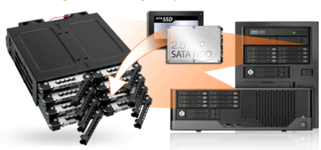 מתאים לכוננים קשיחים של 8 x 5 מ"מ עד 7 מ"מ 2.5 אינץ' SATA או SSD במפרץ חיצוני יחיד בגודל 5.25 אינץ' ליישומי RAID עם ביצועים גבוהים