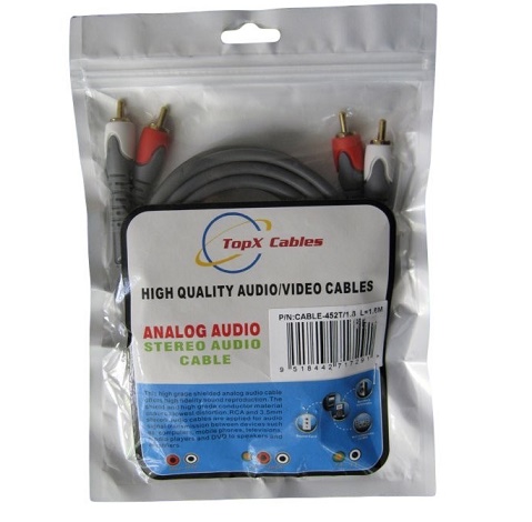 כבל אודיו 2xRCA זכר - זכר איכותי 10 מטר TopX CABLE-452T/10