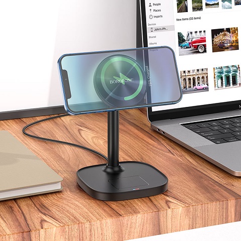 BOROFONE BQ15 Probe, מטען אלחוטי שולחני, פלט 5W / 7.5W / 10W / 15W, לטלפון נייד ואוזניות