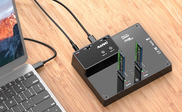 תומך בדיסק קשיח M.2 PCIe NVMe בנפח 2 x 2TB קורא וכותב בו-זמנית. אין צורך בכלים.