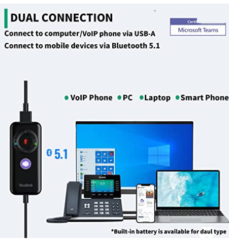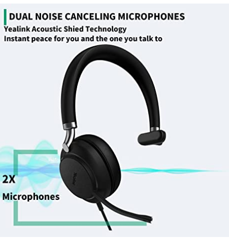 אוזניית מערכת ראש מדונה יילניק Yealink USB Headset UH38, Wired Softphone Headset Teams Certified with Microphone,in Line Controls Built in Bluetooth, Connect to PC/Laptop/Mac/Tablet/Cell Phone (Single Ear (Mono), USB-A)