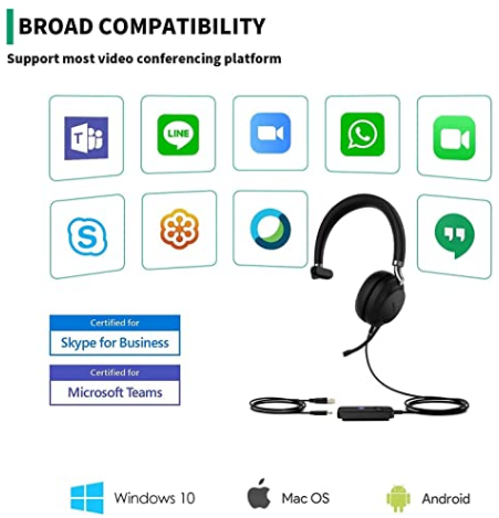 צוותים מוסמכים: אוזניות USB זו עובדות עם כל פלטפורמות שיתוף הפעולה והקול המובילות, והיא מותאמת לצוותים, הצטרף לפגישות MS בלחיצת כפתור.