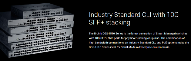 מתג מנוהל 28 ערוצים לארון תקשורת עם 4 יציאות SFP 10Giga דילינק D-Link DGS-1510-28X Gigabit Stackable Smart Managed Switch with 10G Uplinks 24Port Giga + 4 x 10G SFP