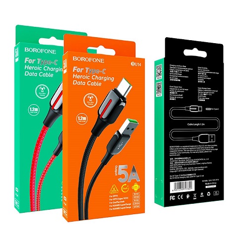 כבל טעינה והעברת נתונים טייפ סי 1 מטר זכר/זכר בורופון Borofone BU14 Heroic charging 5A data cable for Type-C 1.2m nylon braid zinc alloy connectors