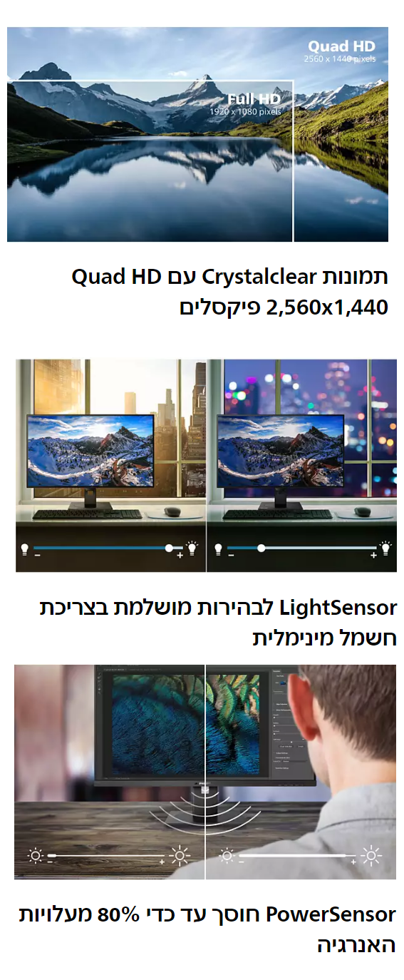 • IPS טכנולוגיה לצבעים מלאים וזוויות צפייה רחבות