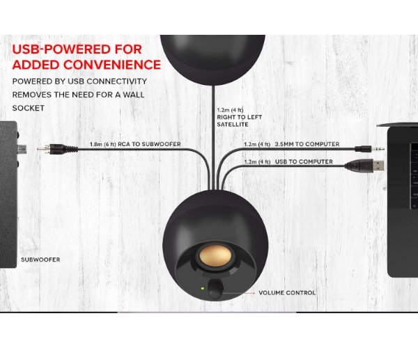 רמקולים קריאטיב USB שחור Creative Black Pebble Plus 2.1 USB Desktop Speakers with Subwoofer 51MF0480AA000