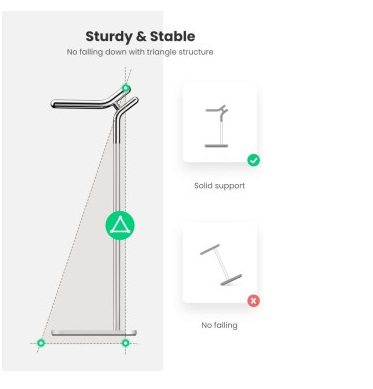 מעמד שולחן לאוזניות UGREEN מאלומיניום עשוי מבסיס יציב ומבנה משולש אלומיניום,