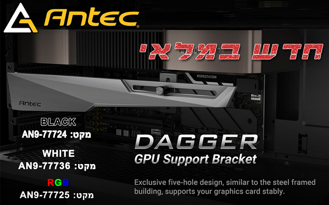 תומך תופסן מייצב לכרטיס מסך אנטק Antec GPU Holder Dagger Black