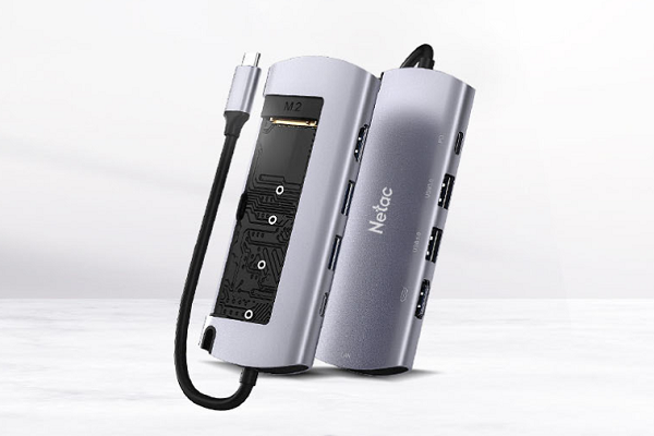תחנת עגינה דוקיננג מיני מולטיפורט למחשב Netac WH41 TYPE-C USB-A HDMI RJ45 1XM.2 SLOT PD 3.0 NT07WH41-32C0