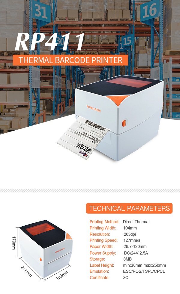 מדפסת מדבקות תרמית רונגאטה RONGTA RP411 4inch Desktop Label Barcode Printer Thermal