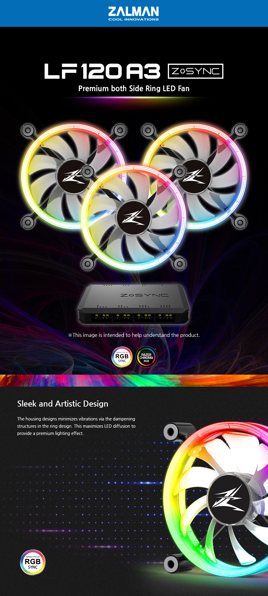 מאוורר למארז זלמן כולל תאורת לד Zalman LF120 120mm Premium Double-Sided Ring LED Fan