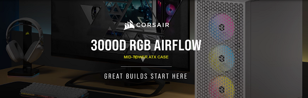 מארז מחשב קורסייר כולל תאורה ללא ספק Corsair CC-9011256-WW 3000D RGB AIRFLOW Mid-Tower PC Case - White ATX Tempered Glass