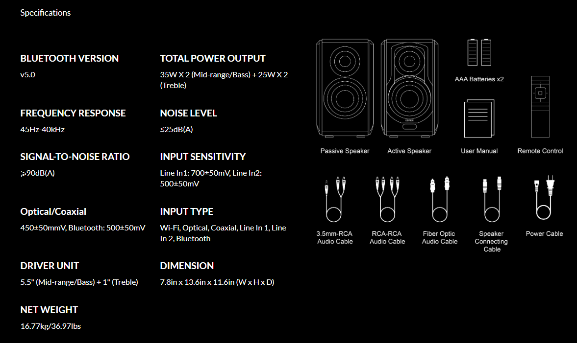 הרמקול תומך בכל אפשרויות הקישוריות העיקריות, כולל WiFi, Bluetooth, OPT, COX ו-AUX. אתה יכול לחבר את הרמקול הזה לכל סוג של כניסה.