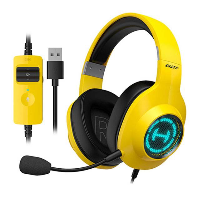 אוזניות קשת חוטיות עם חיבור USB אדיפייר עם מיקרופון מובנה לגיימינג בצבע צהוב EDIFIER G2 II GAMING 7.1 SURROUND SOUND HEADPHONES WITH NC 50MM