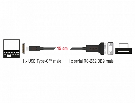 ממיר USB-C לתקע DB9 Serial RS-232 צ'יפ FTDI אורך 15 ס"מ Delock Adapter USB Type-C™ > 1 x Serial DB9 RS-232