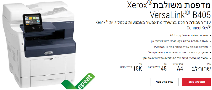 מדפסת לייזר משולבת שחור לבן מחלקתית אמינה זירוקס Xerox VersaLink B405 B405V_DN 1200x1200DPI 45PPM A4 Multifunction Printer
