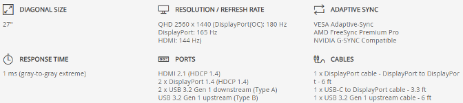 QHD 2560 x 1440 (DisplayPort(OC): 180 הרץ, DisplayPort: 165 הרץ, HDMI: 144 הרץ)