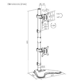 מאפיינים קטגוריית מוצרים: זרוע צג מפרקת דרגה: כלכלה חומר: פלדה, פלסטיק גימור פני השטח: ציפוי אבקה צבע: שחור מט מידות: 390x280x850 מ"מ (15.4"x11"x33.5") גודל מסך מתאים: 17"-32" כמות מסך: 2 קיבולת משקל (למסך): 9 ק"ג (19.8 פאונד) תואם VESA: 75x75,100x100 טווח הטיה: +45°~-45° טווח סיבוב: +90°~-90° סיבוב מסך: +180°~-180° גובה המוט: 815 מ"מ (32.1 אינץ') התקנה: עצמאי צלחת VESA לשחרור מהיר: כן ניהול כבלים: כן
