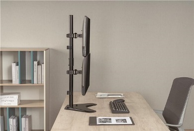 זרוע שולחנית אנכית לשתי מסכי מחשב בסיס שולחני עד ''32 אחד מעל השני עד משקל 9 ק''ג LUMI LDT66-T02V VERTICAL DUAL-MONITOR STEEL ARTICULATING MONITOR STAND