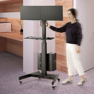 עגלה למחסן מתקן מעמד סטנד נייד למחשב נייח שני מסכים כולל כיוון גובה מסך צידוד מקלדת ועכבר מקום למארז או אל פסק לומי Lumi FWS05-2 DUAL MONITOR 13-32inch HEIGHT ADJUSTABLE COMPUTER MOBILE WORKSTATION