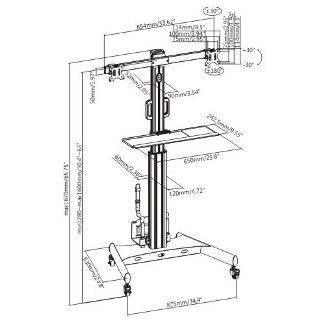 מידות: 875x630x1350~1670 מ"מ (34.4"x24.8"x53.1"~65.7")