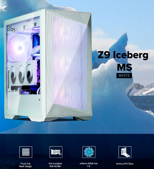 מארז זלמן לגיימרים ללא ספק ZALMAN Z9 Iceberg MS White 4x140mm FANS USB3.1 Type C ATX MID TOWER COMPUTER CASE White