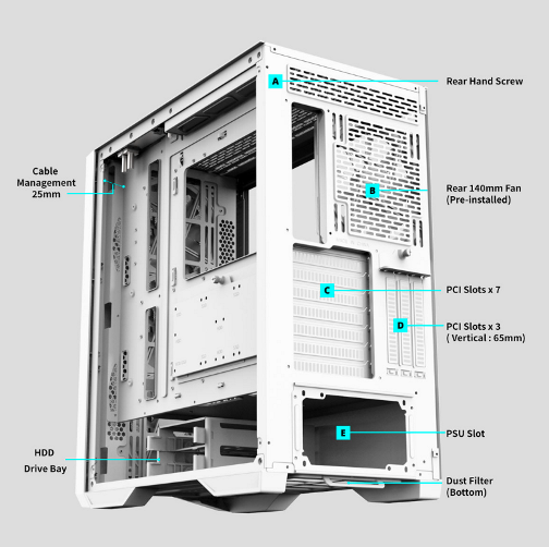 יציאות I/O USB3.0 x 2, USB2.0 x 2, USB 3.1 Gen2 Type-C x 1, MIC, HD AUDIO, לחצן LED, לחצן איפוס, לחצן הפעלה עם LED HDD