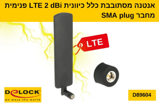 אנטנה מסתובבת כלל כיוונית LTE 2 dBi פנימית מחבר SMA plug דילוק Delock 89604 LTE Antenna SMA plug 2 dBi omnidirectional rotatable with tilt joint black