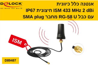 אנטנת ISM זו של Delock ניתנת להתקנה בחוץ ובפנים וניתן להשתמש בה עם פס 433 מגה-הרץ.