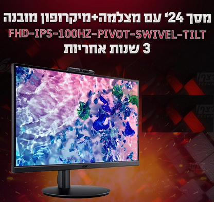 מסך מחשב מולטימדיה כולל רמקולים ומצלמה אייסר Acer UM.QB2EE.317 CB242Y D 24 Series 24Inch Full HD 1920x1080 IPS 1ms 75Hz 1xVGA 1xHDMI 1.4 1xDP 1.2 USB-B SPK Webcam Mic Swivel Pivot Monitor